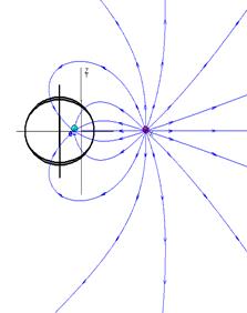 Рис.4. Трудности традиционных визуализаций существенно трехмерных систем: демонстрация решения методом изображений задачи о заряде вблизи заземленной сферы (левый рисунок) становится существенно более наглядной после удаления всех силовых линий, не лежащих в плоскости чертежа (правый рисунок)